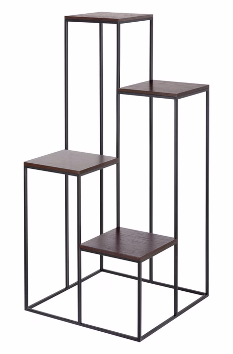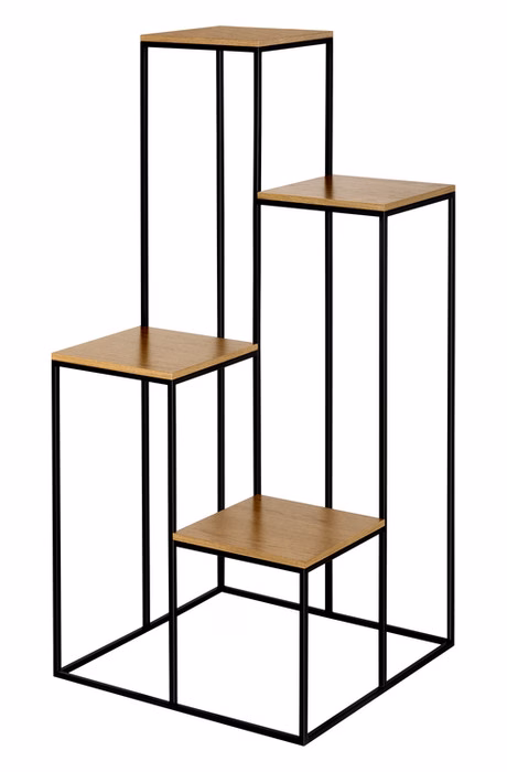 Innendekorationen / Blumenständer / Blumenständer Schmiedeeisen Hoch - 4-stufiger Blumenständer. Blumenständer aus Metall Der 4-big-Ständer ist eine erweiterte, vergrößerte Version des Universalständers. Er besteht aus vier Elementen, die miteinander verbunden sind und eine solide Struktur bilden, die an sich schon eine originelle Dekoration und ein nützliches Element der Inneneinrichtung ist. Der Ständer hat einen Metallsockel und eine mit natürlichem Furnier bearbeitete Platte. Die Platten sind leicht sauber zu halten. Sie sind eine starke und dauerhafte Basis auch für schwere Gegenstände. Der Ständer kann als Blumenbeet verwendet werden, was ideal für die Gestaltung origineller Blumenkompositionen ist. Der Ständer und die Abdeckplatten sind in mehreren Farbvarianten erhältlich, die zu verschiedenen Einrichtungsstilen passen.