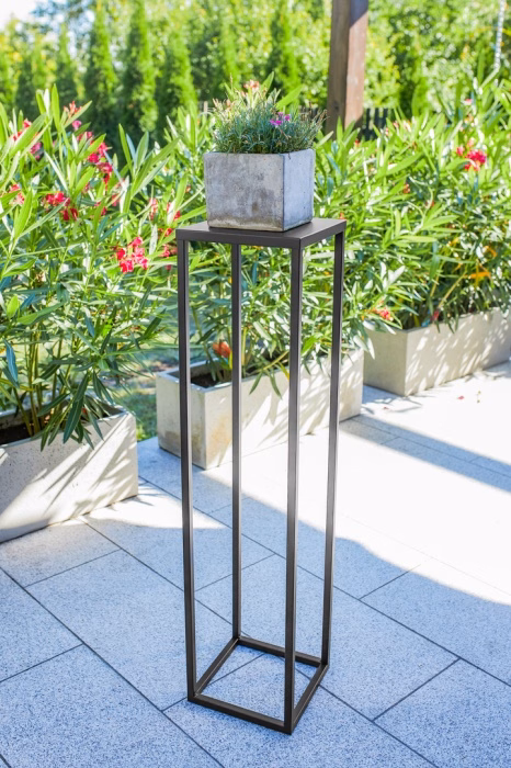 Innendekorationen / Blumenständer / Blumenständer Schmiedeeisen Hoch - Blumenbeet aus Metall. Plattform für Blumen. LOFT-Ständer Der moderne Metallständer für Pflanzen und Blumenarrangements mit einer beeindruckenden Höhe von 100 cm ist nicht nur eine praktische Lösung, sondern auch ein modernes Dekorationselement, das die Art und Weise, wie Pflanzen in Ihrer Umgebung präsentiert werden, auffrischt. Besondere Merkmale: Elegantes Design: Der Ständer zeichnet sich durch sein modernes und elegantes Design aus, das eine harmonische Einheit mit modernen Designtrends bildet. Langlebiges Material: Der aus hochwertigem Metall gefertigte Ständer ist robust, langlebig und witterungsbeständig und eignet sich daher sowohl für den Innen- als auch für den Außenbereich. Einfache Wartung: Die Schutzbeschichtung sorgt für eine einfache Wartung. Regelmäßiges Reinigen mit einem feuchten Tuch genügt, damit der Ständer sein modernes Erscheinungsbild über viele Jahre hinweg beibehält. Hohe Stabilität: Die robuste Konstruktion garantiert Stabilität, auch wenn sie mit einer Vielzahl von Pflanzen beladen ist. Er ist nicht nur ein ästhetisches Element, sondern auch eine praktische Lösung für Ihren Garten oder Ihr Interieur. Ideale Basis für Blumenkompositionen: Seine durchbrochene Form und sein zartes Aussehen eignen sich hervorragend für Blumenkompositionen. Pflege: Um das tolle Aussehen und die Haltbarkeit des Pflanzenständers zu erhalten, empfehlen wir: Regelmäßige Reinigung: Verwenden Sie ein feuchtes Tuch, um Staub und Schmutz zu entfernen. Vermeiden Sie extreme Wetterbedingungen: Obwohl der Ständer wetterfest ist, sollten Sie extreme Bedingungen vermeiden, die seine Haltbarkeit beeinträchtigen könnten. Der innovative 100 cm hohe Pflanzenständer ist nicht nur ein funktionaler Teil des Gartens, sondern auch ein Design-Akzent, der dem Raum einen modernen Touch verleiht.