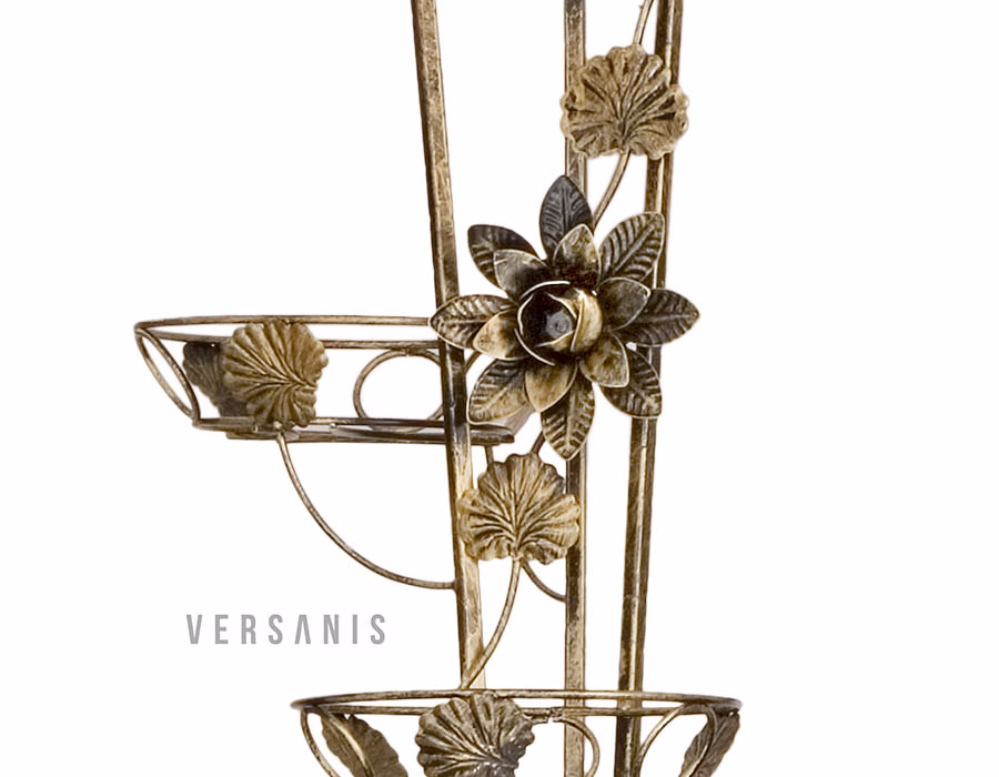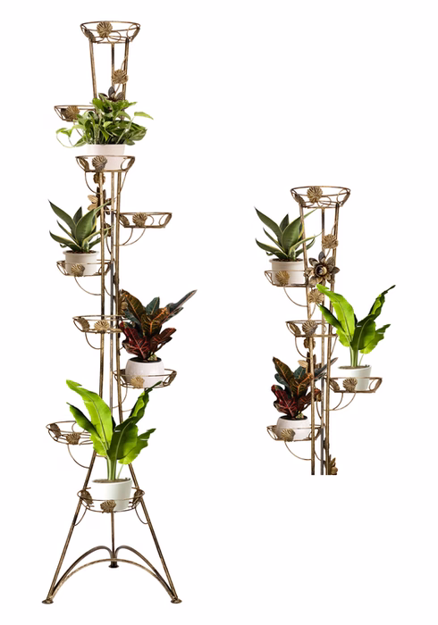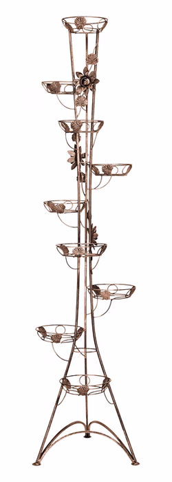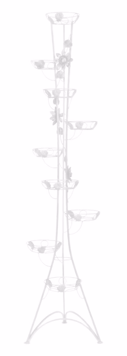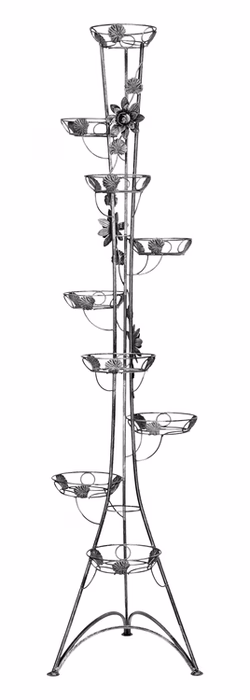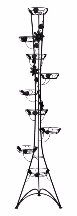Innendekorationen / Blumenständer / Blumenständer Schmiedeeisen Hoch - Blumenständer Metall 9 Stufen Das hohe Säulenbeet aus dem Versanis-Onlineshop ist ein romantisches Accessoire, das auf Ihrer Terrasse eine "verzauberte Gartenatmosphäre" schafft. Verziert mit romantischen Blumenmotiven aus geschmiedetem Stahl, Blattwerk und dezenten Wellen, wirkt es äußerst elegant. Der hohe Ständer besteht aus bis zu neun Topfstützen. Trotz seiner Höhe ist er mehr als stabil und langlebig. Um die beste Wirkung zu erzielen, empfiehlt es sich, die Töpfe mit Hängepflanzen zu bepflanzen, die dann in Kaskaden von oben herabfallen und das Auge von Gästen und Hausbewohnern erfreuen. Um ihn besser in seine Umgebung einzupassen, können Sie aus mehreren Farboptionen wählen.