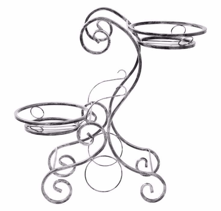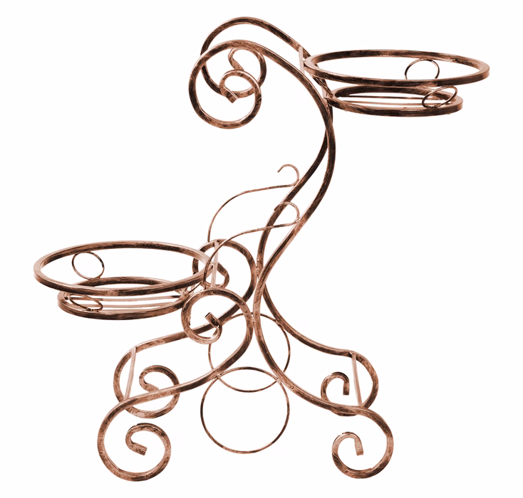 Innendekorationen / Blumenständer / Blumenständer - Blumenständer Metall 2 Stufen Das Aufstellen eines Metallbeetes im Garten oder auf der Terrasse aus dem Angebot des Versanis-Online-Shops ist die effektivste Art und Weise, um Haushaltsmitglieder und Gäste zu erfreuen. Das schicke, äußerst elegante und zugleich langlebige Produkt wurde in einer polnischen Werkstatt nach der Methode der Metallverarbeitung hergestellt, die seit langem viele Bewunderer hat. Das Blumenpodest ist robust und widerstandsfähig, und vor allem sehr stabil. Es ist mit komplizierten Pflanzenmotiven verziert, die in Stahl geschmiedet wurden: Blumen und Stängel. Möchten Sie Ihre Neuanschaffung besser mit den bereits vorhandenen Möbeln auf Ihrer Terrasse abstimmen? Entscheiden Sie sich für eine von mehreren Farben für den Metallrahmen: Mattschwarz, Weiß oder Kupfer. Das moderne Blumenbeet mit seinen romantischen Motiven aus zarten Wellen in Stahl hat zwei praktische Sockel für Blumentöpfe.