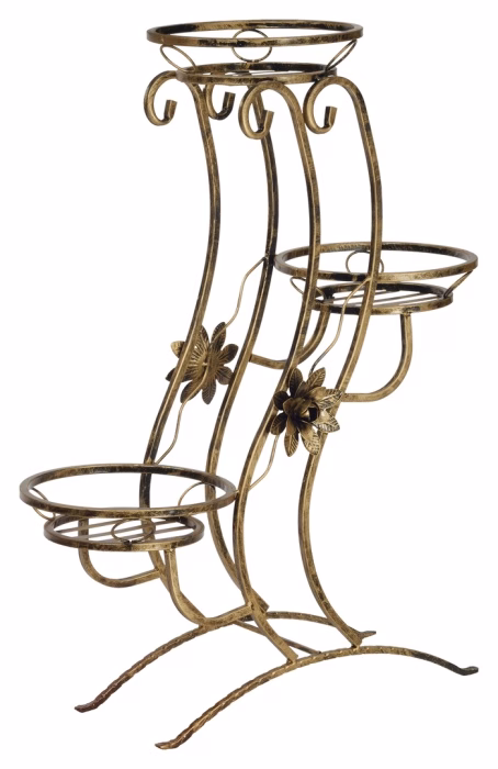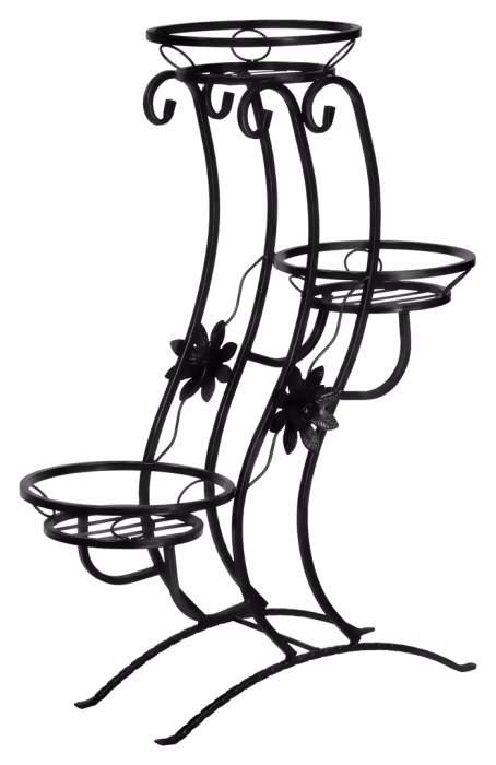 Innendekorationen / Blumenständer / Blumenständer Schmiedeeisen Hoch - Blumenständer Metall 3 Ebenen Das Metallblumenbeet aus dem Angebot des Versanis Online-Shops ist eine schicke Idee für den Garten oder die Terrasse. Es wird von einem polnischen Hersteller in Metallverarbeitung hergestellt und ist zusätzlich mit aus Stahl geschmiedeten Pflanzenmotiven und zarten Jugendstilwellen verziert. Der Blumenständer aus Metall erfüllt die Erwartungen der Anspruchsvollsten: Er ist langlebig, und sein entsprechend gestaltetes und ausgewogenes Gestell garantiert Stabilität. Dank der Verwendung von hochwertigen Rohstoffen kann er auch im Freien aufgestellt werden, ohne dass er beispielsweise durch Regen beschädigt wird. Der Farbton der pulverbeschichteten Metallstruktur kann durch die Wahl zwischen mehreren Farbvarianten auf die übrigen Möbel und Accessoires abgestimmt werden. Das moderne Blumenbeet besteht aus drei praktischen Topfböden, auf denen Sie die schönsten Exemplare Ihrer Pflanzensammlung präsentieren können.