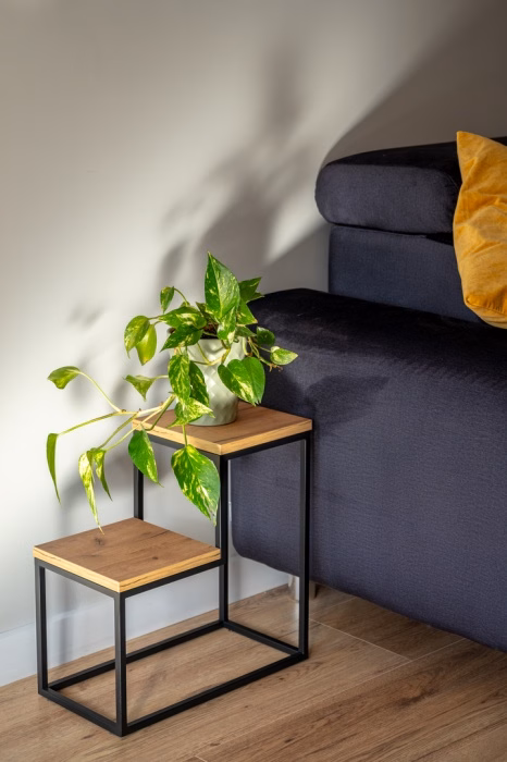 Innendekorationen / Blumenständer / Blumenständer - Blumenständer. Metallständer mit zwei Aufsätzen - L Das Metallblumenbeet mit einzigartiger L-Form und zwei Ablagen ist nicht nur eine praktische Dekoration für den Innenraum und Garten, sondern auch ein Ausdruck von individuellem Stil und Ästhetik. Es ist aus robustem Metall gefertigt, was für Langlebigkeit und Stabilität sorgt. Das präsentierte Blumenbeet bietet den perfekten Platz, um Ihre Lieblingspflanzen und -blumen zu präsentieren. Mit zwei Ablagen haben Sie genügend Platz, um schöne Pflanzenkompositionen zu schaffen, die Ihrem Interieur einen einzigartigen Charme verleihen. Sein minimalistisches und doch elegantes Design macht es für eine Vielzahl von Gartenarrangements geeignet, von modern bis klassisch. Er unterstreicht nicht nur die natürliche Schönheit Ihrer Pflanzen, sondern ist auch ein beeindruckendes dekoratives Element. Genießen Sie die Schönheit der Natur in Harmonie mit modernem Stil mit diesem einzigartigen L-förmigen Metallblumenbeet.