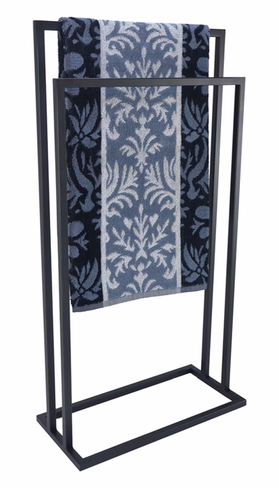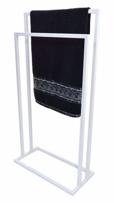 Räume / Badezimmer / Handtuchhalter - Handtuchhalter. 2-Arm Bad Kleiderbügel Vorteile des Ständers hergestellt aus Metall pulverbeschichtet zum Schutz vor Korrosion, Feuchtigkeit und Ausbleichen der Farbe Einfache, robuste Konstruktion Wird als Set geliefert, keine Selbstmontage erforderlich in vier Farbvarianten erhältlich Hochwertige Konstruktion Gummifüße zum Schutz des Bodens vor Kratzern. verschiedene Armhöhen kompakte Größe, die auch in kleine Badezimmer passt glatte Oberfläche für einfache Reinigung Ein wunderschöner Handtuchhalter aus Metall, der in vier Farbvarianten erhältlich ist. Er ist vollständig aus Metall gefertigt und mit einem bei hoher Temperatur gehärteten Lack geschützt, der das Produkt vor Feuchtigkeit und Farbausbleichen bewahrt. Vielseitigkeit und Einfachheit Dank seines markanten und schlichten Designs passt der Ständer zu jedem Einrichtungsstil. Er hat zwei vertikale Arme. Jeder Arm hat den richtigen Abstand zueinander und eine unterschiedliche Höhe, was eine ausreichende Luftzirkulation und ein schnelleres Trocknen der Handtücher ermöglicht. Außerdem erleichtert er das Aufhängen von Handtüchern unterschiedlicher Länge. Eine Selbstmontage ist nicht erforderlich. Nach der Entnahme aus der Verpackung ist er sofort einsatzbereit. Reinigung und Pflege Für die Reinigung wird die Verwendung von Reinigungsmitteln nicht empfohlen. Ein mit Wasser angefeuchtetes Tuch reicht für eine ordnungsgemäße Reinigung aus.