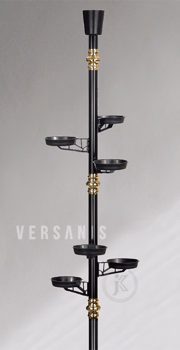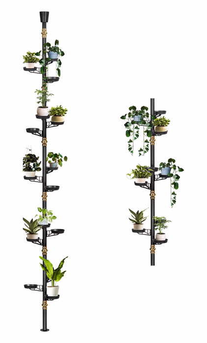 Innendekorationen / Blumenständer / Blumenständer Rohr - Hochbeet - Teleskopständer für 15 Pflanzen Es handelt sich um ein Blumenbeet, das eine Vielzahl von Pflanzen zeigt und ihre natürliche Schönheit hervorhebt. Dieses Modell von Versanis wird die größten Liebhaber des Grüns in ihrem Haus begeistern. Es ist so konzipiert, dass es bis zu 15 Töpfe aufnehmen kann, die einen Raum vom Boden bis zur Decke schmücken werden. Das Design des Blumenbeets ist sehr originell und kann viel Gemütlichkeit und eine idyllische Atmosphäre in den Innenraum bringen. Es ermöglicht eine maximale Raumausnutzung. Eine Vielzahl von farbenfrohen Kletterpflanzen in Kombination mit dem Blumenbeet ergibt eine sehr wirkungsvolle Komposition. Dieses Modell eignet sich perfekt für die Dekoration eines Schlafzimmers, Wohnzimmers oder Flurs. Es zieht mit seiner originellen Form die Blicke auf sich und unterstreicht perfekt den Charme der verschiedenen Pflanzenarten. Es ist auch eine gute Möglichkeit, alle Ihre Lieblingsblumen unterzubringen, die zusammen ein einzigartiges Arrangement ergeben. Das Produkt zeichnet sich durch seine Stabilität und Langlebigkeit aus, die durch die Verwendung von Materialien höchster Qualität gewährleistet wird. Es kann problemlos das Gewicht einer großen Anzahl von Töpfen tragen. Es wird in einer Kartonverpackung verkauft, die den Transport erleichtert.