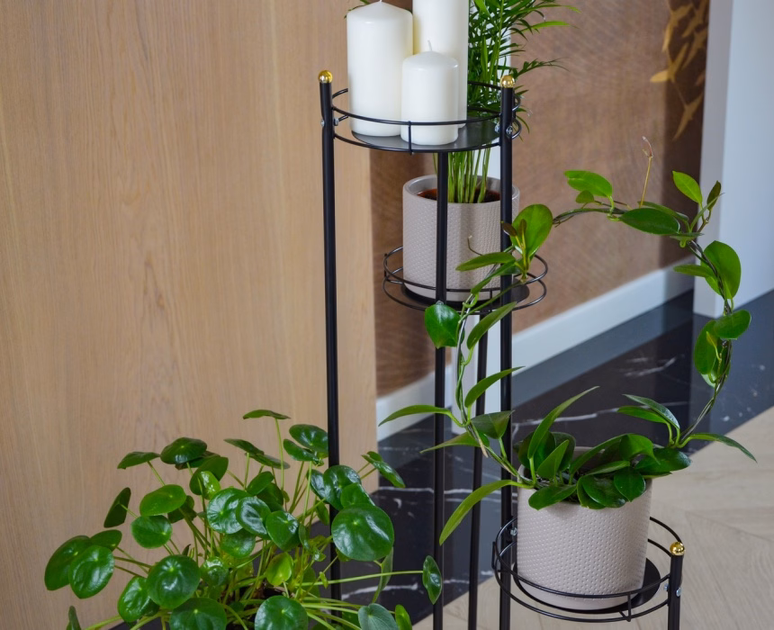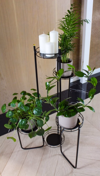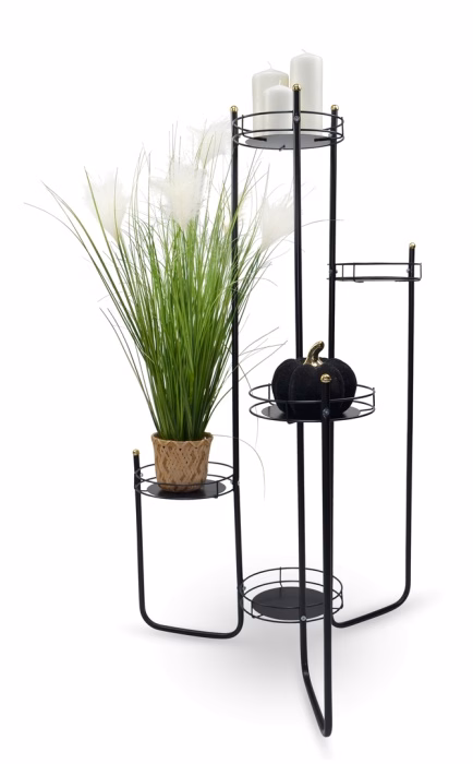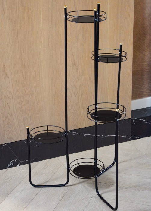 Innendekorationen / Blumenständer / Blumenständer Rohr - Klassisches gedrehtes Blumenbeet für 5 Töpfe Ein Blumenbeet, das Platz für mehrere Topfpflanzen bietet? Das ist eine tolle Lösung! Das ein Meter lange Blumenbeet mit Platz für fünf Töpfe hat einen minimalistischen, zeitlosen Look und passt somit in jedes Interieur. Es ist aus Metall gefertigt, damit Sie lange Freude an Ihren Topfblumen haben. Blumenbeet für fünf Töpfe Das Blumenbeet für fünf Töpfe ist etwas mehr als einen Meter hoch und die gesamte Struktur ist aus Metall. Das universelle Blumenbeet mit minimalistischem Design ist in verschiedenen Farbtönen erhältlich, so dass Sie die Farbe wählen können, die am besten zu Ihrer Einrichtung passt. Es wird in einer Pappschachtel verkauft, die zur Selbstmontage vorgesehen ist. Optimale Größe Das Blumenbeet mit Platz für fünf Töpfe ist ein echter Leckerbissen für Gartenliebhaber. Kompakt und genau in der richtigen Größe bietet es bequem Platz für Pflanzen, so dass es unabhängig von seiner Größe in praktisch jedem Bereich eingesetzt werden kann. Dank seiner Farbpalette passt er zu vielen Inneneinrichtungen. Das einfache Design macht es leicht, ihn selbst zu montieren.
