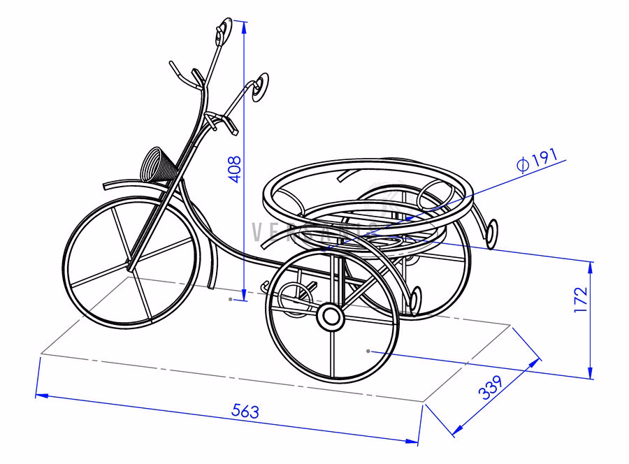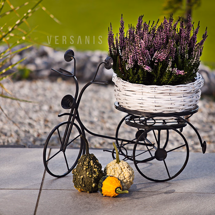 Innendekorationen / Blumenständer / Blumenständer - Kleines Blumenfahrrad aus Metall Frischen Sie den Charakter Ihres Gartens oder Ihrer Terrasse mit dem raffinierten, stilvollen Blumenbeet in Form eines Retro-Fahrrads auf. Das im Versanis-Onlineshop erhältliche Blumenbeet ist ein Akzent, der Ihre Hausbewohner und Gäste begeistern wird. Metallarbeiten, eine Technik, die in Polen hergestellt wurde, liegen seit Jahren im Gartentrend. Das Metallblumenbeet ist mit romantischen Motiven aus geschmiedeten Stahlelementen verziert. Das Produkt hat zwei Sockel für Töpfe - darin können Sie die schönsten Exemplare Ihrer Pflanzensammlung präsentieren. Stabil, langlebig und widerstandsfähig, kann das Blumenbeet auch im Freien gelagert werden. Um das Blumenbeet besser auf seine Umgebung abzustimmen, können Sie aus mehreren Farbvarianten wählen.