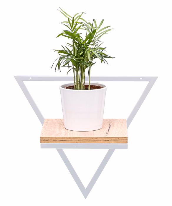 Innendekorationen / Blumenständer / Wandampel - Mauerdreieck Blumenbeet mit Brett Wandblumentopf Dreieck mit Holzplatte ist ein modernes, funktionales Dekorationselement, das Ästhetik und Praktikabilität perfekt miteinander verbindet. Sein minimalistisches Design und die geometrische Form eines Dreiecks machen ihn zu einem außergewöhnlichen Akzent in jedem Raum, sei es im industriellen, skandinavischen oder modernen Stil. Dieser Blumentopf ist die ideale Lösung für diejenigen, die ihrem Raum ein Stück Natur verleihen möchten, ohne auf schlichte und elegante Formen zu verzichten. Produktmerkmale: Hohe Materialqualität: Der Blumentopf ist aus solidem Holz mit natürlicher Oberflächenbehandlung gefertigt, was ihm Wärme und Charakter verleiht. Die Holzplatte, auf der die Pflanzen stehen, ist sorgfältig bearbeitet, was ihre Langlebigkeit und ästhetisches Aussehen garantiert. Innovative Form: Die dreieckige Form des Blumentopfs verleiht ihm ein einzigartiges Aussehen, das perfekt zu modernen Designtrends passt. Es ist eine ausgezeichnete Alternative zu traditionellen rechteckigen Regalen oder Blumentöpfen, die den Raum dominieren könnten. Vielseitigkeit: Das Produkt passt hervorragend in verschiedene Räume: vom Wohnzimmer über die Küche bis hin zum Büro oder Schlafzimmer. Es kann an der Wand aufgehängt werden, was Platz auf dem Boden spart und gleichzeitig dem Raum Leichtigkeit verleiht. Einfache Montage: Der Blumentopf lässt sich einfach an der Wand montieren, was eine schnelle und bequeme Raumgestaltung ermöglicht. Im Set sind alle notwendigen Montagematerialien enthalten. Stilvolle Präsentation für Pflanzen: Der Blumentopf eignet sich hervorragend zur Präsentation von Zimmerpflanzen. Er ermöglicht eine ästhetische Präsentation der Pflanzen und sorgt gleichzeitig für genügend Licht für ihr Wachstum. Verwendung: Er eignet sich perfekt für die Präsentation von mittelgroßen und kleinen Pflanzen in Töpfen, wie Sukkulenten, Kakteen oder Kletterpflanzen. Auch als Aufbewahrungsort für kleine dekorative Objekte, Kerzenhalter oder Figuren, die dem Raum einen besonderen Charakter verleihen, ist er ideal. Dieser dreieckige Blumentopf mit Holzplatte zeichnet sich nicht nur durch sein modernes Aussehen, sondern auch durch seine Funktionalität und Langlebigkeit aus. Eine ideale Wahl für diejenigen, die ihren Raum elegant und gleichzeitig einfach und naturnah gestalten möchten.