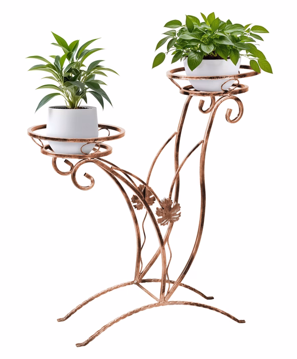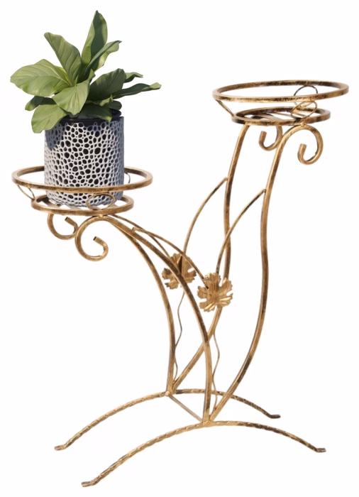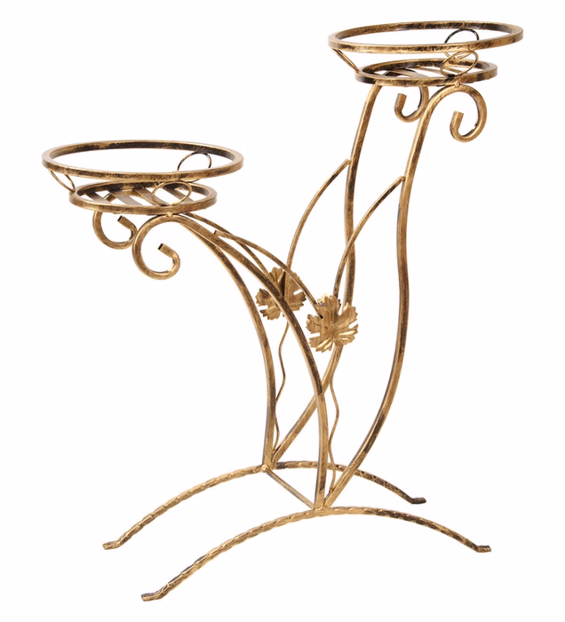 Innendekorationen / Blumenständer / Blumenständer Schmiedeeisen Hoch - Metallblumenbeet für zwei Pflanzen Das außergewöhnliche polnische Metallbeet eines polnischen Herstellers wird auch die größten Fans des klassischen Designs begeistern. Langlebig und widerstandsfähig, zeichnet es sich vor allem durch seine Stabilität aus - es kann sogar auf weniger ebenem Boden im Garten aufgestellt werden. Aber auch in einer Diele oder einem geräumigen Wohnzimmer macht es eine gute Figur. Der Farbton der pulverbeschichteten Struktur kann auf andere Möbel und Accessoires abgestimmt werden, wobei zwischen helleren und dunkleren Varianten gewählt werden kann. Das Blumenbeet ist mit eleganten floralen Motiven aus Schmiedestahl verziert, die von Liebhabern des exklusiven Designs geschätzt werden. Es verfügt über drei praktische Sockel, die auch größere Pflanzgefäße aufnehmen können.