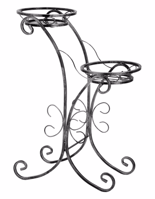 Innendekorationen / Blumenständer / Blumenständer - Metallblumenbeet für zwei Töpfe Ein Blumenbeet für die Terrasse oder den Garten aus der breiten Produktpalette des Versanis-Shops besticht durch seine Langlebigkeit und sein elegantes Aussehen. Es wurde in der Werkstatt eines polnischen Herstellers in der seit Jahren angesagten und begehrten Technik der Metallverarbeitung hergestellt. Er ist mit geschmiedeten Stahlmotiven von Blütenblättern und eleganten Stängeln verziert. Dieser Pflanzenständer kann sowohl draußen als auch drinnen aufgestellt werden, zum Beispiel in einem geräumigen Wohnzimmer oder in einem Büroflur. Er wird sich perfekt in seine Umgebung einfügen und seinen Charakter unterstreichen, wenn Sie sich für einen der verschiedenen Farbtöne der Metallstruktur entscheiden. Für die Stabilität sorgen vier stabile, dezent geschwungene Stahlbeine. Er verfügt über zwei praktische Blumentopfsockel, in die zwei Lieblingspflanzen gestellt werden können.