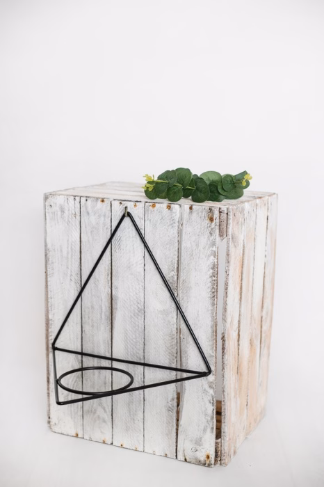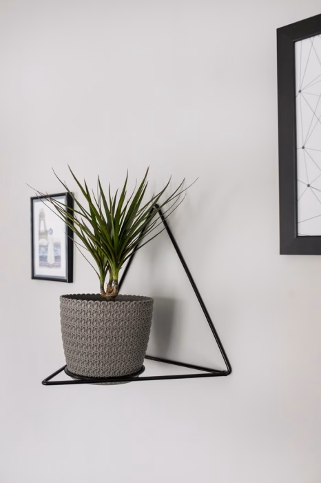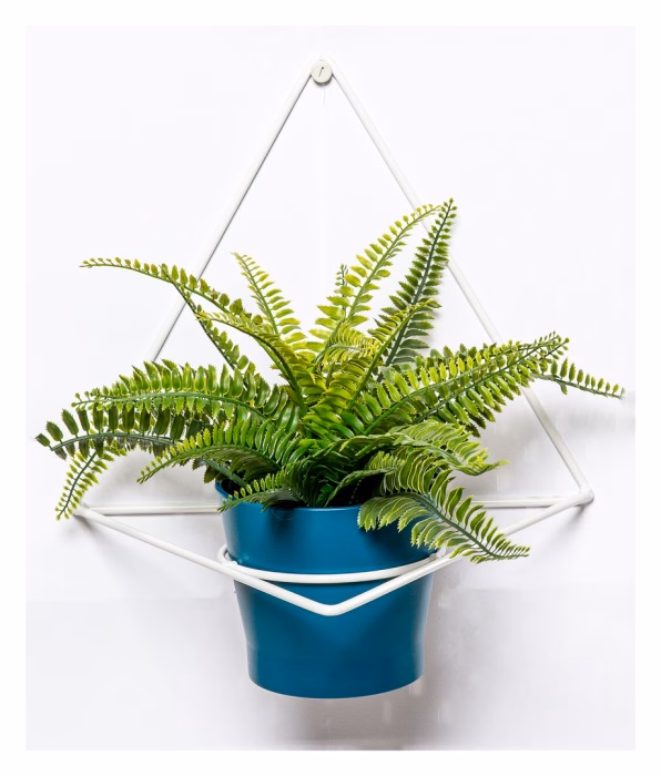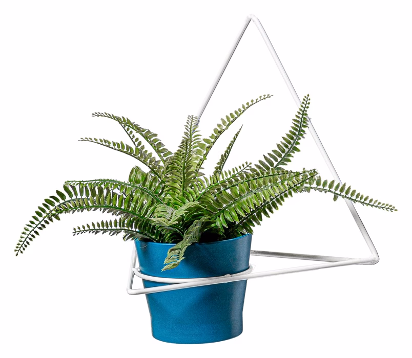 Innendekorationen / Blumenständer / Wandampel - Metallwand Blumenbeet - GEOMETRIC Dieses Wandblumenbeet aus Metall ist die ideale Lösung für alle, die eine elegante Art und Weise suchen, ihre Pflanzen zu präsentieren. Das Blumenbeet hat eine geometrische Dreiecksform, die heutzutage sehr beliebt ist. Es ist aus robustem Metall gefertigt und daher langlebig und wetterfest. Der Blumentopfsockel hat einen Durchmesser von 12,5 cm und passt somit in die meisten gängigen Blumentöpfe. Das Blumenbeet lässt sich leicht an der Wand befestigen, spart so Platz auf dem Boden und schafft ein interessantes dekoratives Element im Raum. Die geometrische Dreiecksform verleiht dem Blumenbeet Eleganz und Modernität, so dass es zu einer Vielzahl von Einrichtungsstilen passt. Es kann zur Präsentation von Topfpflanzen, Kräutern oder Schnittblumen verwendet werden. Es ist eine hervorragende Möglichkeit, die Einrichtung eines Raumes zu bereichern und ein interessantes Dekorationselement zu schaffen.