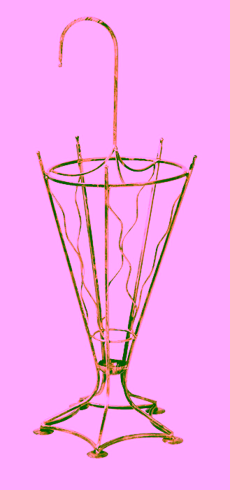 Räume / Flur & Diele / Regenschirmständer - Regenschirmhalter - Schirmständer Ein einzigartiges, ungewöhnliches Design kann Ihr Zuhause oder Ihr Büro schmücken und Ihren Gästen schon an der Türschwelle zeigen, dass Sie einen exquisiten Geschmack haben und sich um jedes kleine Detail kümmern können. Der aus Metall gefertigte Ständer hat die Form eines Regenschirms und ist mit sanft geschwungenen Wellen verziert. Er ist geräumig, kann problemlos mehrere Schirme aufnehmen und kippt dank seines ausgewogenen, stabilen Sockels nicht unter seinem Gewicht um. Der Schirmständer lässt sich dank seines praktischen Griffs von einem Ort zum anderen bewegen, was durch sein geringes Gewicht noch erleichtert wird. Obwohl der Metallschirmständer viel Retro-Charme versprüht, ist er erstaunlich vielseitig, so dass er auch in eine moderne Wohnungseinrichtung passt, zum Beispiel als Dekoration im Flur. Er sieht gut aus in Kombination mit einem Garderobenständer aus Metall in einem ähnlichen Farbton, lässt sich aber auch gut mit Möbeln aus ganz anderen Rohstoffen kombinieren.