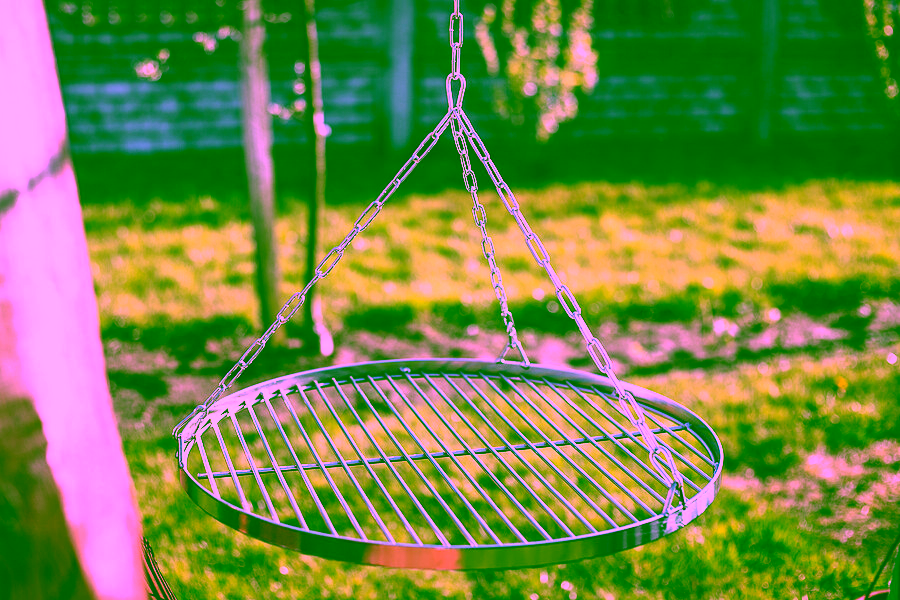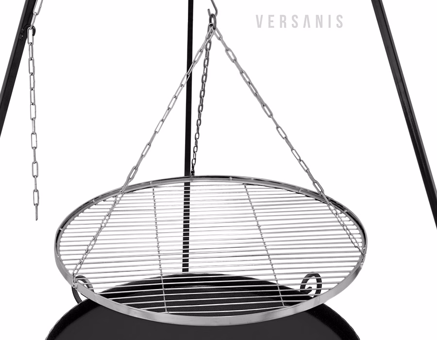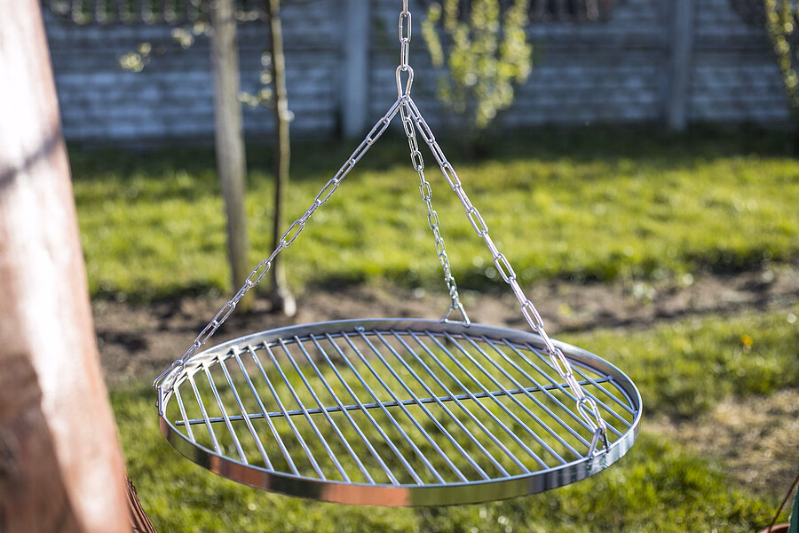 Gartenausstattung / Grill / Schwenkgrill Dreibein - Schwenkgrill 3-beinig Das vorgestellte Produkt ist ein umfassendes Set, das die Zubereitung von Mahlzeiten über dem Lagerfeuer ermöglicht. Ein Jagdgrill des Herstellers Kapelańczyk ist eine Garantie für höchste Qualität und Langlebigkeit. Er ist aus den solidesten Materialien hergestellt, dank derer er viele Jahre lang dienen wird. Der Grill zeichnet sich durch seine Langlebigkeit und die Beachtung der kleinsten Details aus. Er besteht aus drei Teilen: einer Feuerstelle, einem Grill und einem Stativ. Das Ganze gewährleistet die Zubereitung von exquisiten und köstlichen Gerichten, die sich durch ein gründliches Backen auszeichnen. Darüber hinaus sieht das Produkt sehr originell und beeindruckend aus. Es eignet sich perfekt als dekoratives Element für jeden Garten und unterstreicht die idyllische und unbeschwerte Atmosphäre. Die Feuerstelle steht auf drei Beinen, was Stabilität garantiert. Seine Oberfläche ist mit einer hitzebeständigen Spezialfarbe beschichtet. Der Rost ist verchromt und sein großer Durchmesser ermöglicht das Braten mehrerer Gerichte über einem Feuer. Der Jagdgrill im Set verfügt außerdem über ein Dreibein von beeindruckender Höhe, an dem die anderen Elemente hängen.