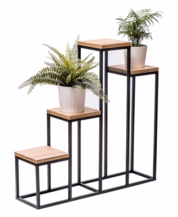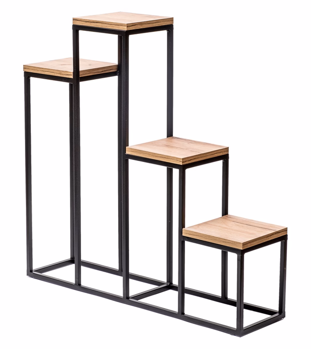 Innendekorationen - Stehender Blumenständer Blumenständer aus Metall mit Ablageflächen auf 4 Ebenen. Der Pflanzenständer aus Metall mit 4 Ebenen ist nicht nur praktisch, sondern auch ein dekoratives Element für Innen- und Außenbereiche. Gefertigt aus langlebigem, korrosionsbeständigem Metall, ist er ideal für den täglichen Gebrauch. Die präzise Verarbeitung und die stabile Konstruktion gewährleisten die Sicherheit Ihrer Pflanzen, während das minimalistische und elegante Design sowohl in moderne als auch klassische Einrichtungsstile passt. Die vier Ebenen bieten die Möglichkeit, Ihre Pflanzen kreativ anzuordnen – von großen, auffälligen Töpfen auf der untersten Ebene bis hin zu kleineren Kräutern oder Kakteen oben. Dank der kompakten Maße eignet sich der Ständer perfekt für verschiedene Räume, wie Wohnzimmer, Balkon, Terrasse oder Garten. Gestalten Sie Ihre grüne Oase zu Hause oder im Freien. Der Metall-Pflanzenständer ist leicht zu reinigen und zu pflegen. Die einfache Montage ermöglicht eine schnelle Inbetriebnahme, und die stabile Basis sorgt für Standfestigkeit auch bei voller Beladung. Eine ideale Wahl für alle, die Ästhetik, Langlebigkeit und Funktionalität in einem schätzen.